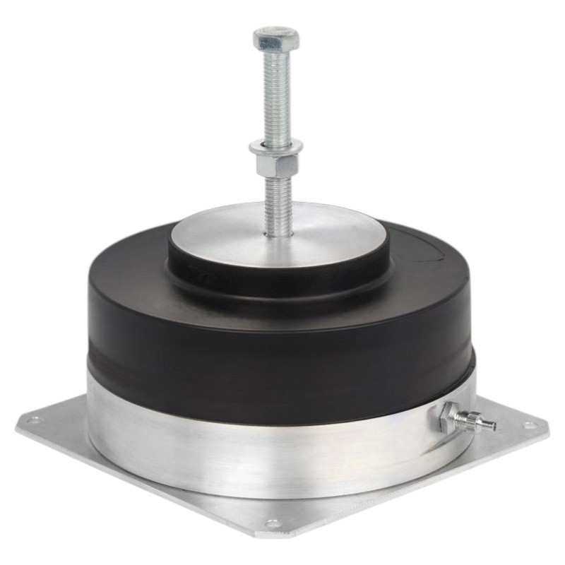 - Эластомерно-металлическое соединение с напольной плитой, воздушная камера из эластомера, усиленная стальным каркасом. Корпус и опорная пластина изготовлены из алюминия. Подача воздуха через вентиль автомобильной камеры, 8 типоразмеров
