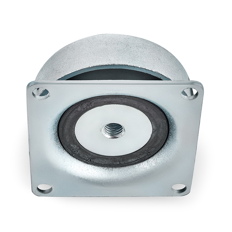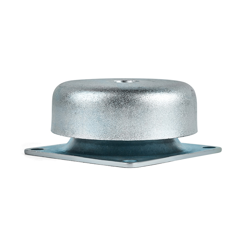 Виброизолятор имеет резино-металлический состав: корпус изготовлен из оцинкованной стали, а резиновая подушка состоит из CR-каучука (хлоропрен), устойчива к маслу и бензину.