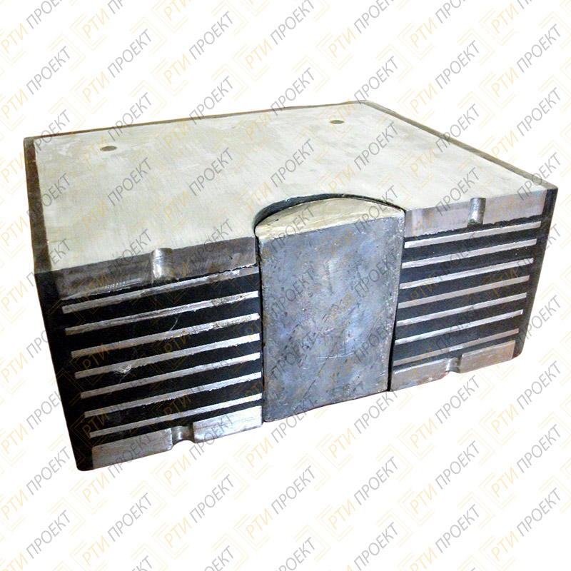 - «РОЧр» - резиновая опорная часть с рифлеными листами сверху и снизу для передачи горизонтальной силы на конструкцию.>